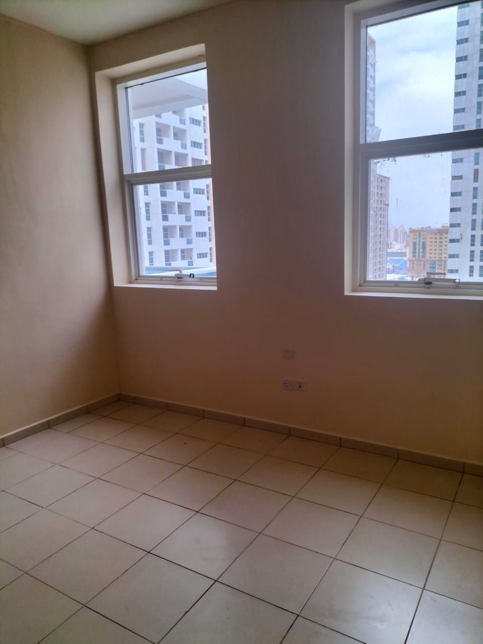 Two - bedroom apartment for sale in Ajman Towers 1. Spacious apartment with balcony, open view, built - in wardrobes, laundry room, three bathrooms, two master bedrooms, and parking. Price AED650000