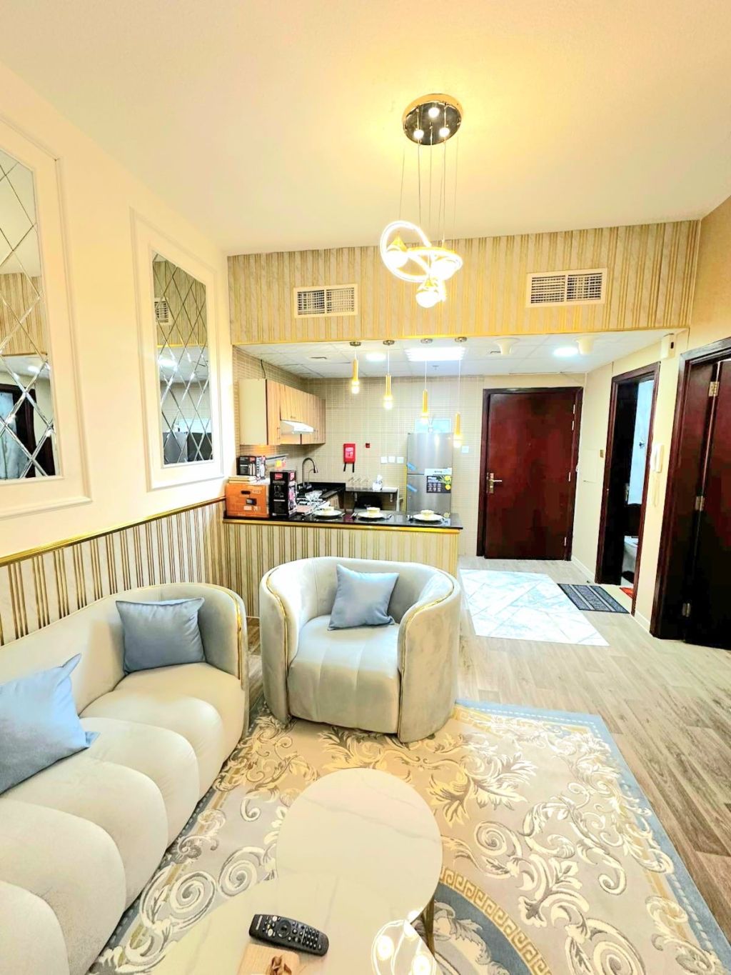 Apartment for sale in Ajman - Khalifa Street City Tower, prime location near Safeer Mall and Al Murad Mall. 1 bedroom and living room Size 750 SqFt Master bedroom 2 bathrooms Balcony Central AC fully furnished with new furniture and appliances, private parking. Price AED430000 cash All installments paid Negotiable