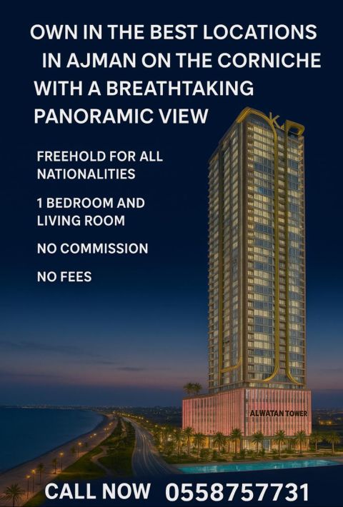 Own Your Dream Apartment with a Stunning sea view on Ajman Corniche Freehold for All Nationalities - Live or Invest in a Prime Waterfront Location Available Units 1 Bedroom & Hall with City View - 2 Bedrooms & Hall with a Panoramic sea view Features 100% Freehold Ownership for All Nationalities No Commission - No Hidden Fees Prime Location on Ajman Corniche Luxury Finishes & Open Receive your unit