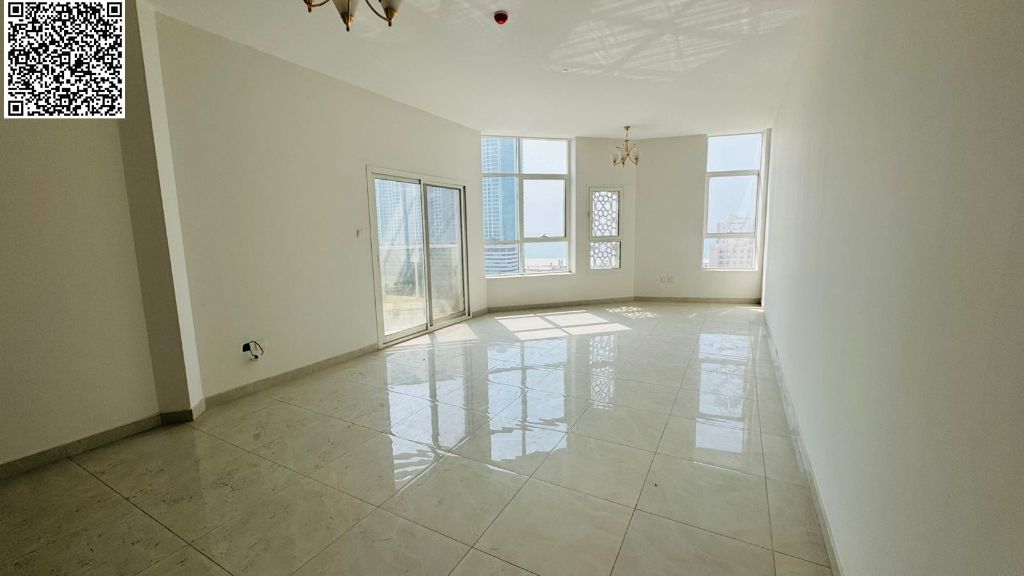 أكبر وأرقى غرفتين وصالة بكورنيش عجمان بناية جديدة أول ساكن غرفتين ماستر 3 حمام مع خزائن حائط وغرفة غسيل الشقة بالكامل اطلالة بحرية بمساحة كبيرة جدا مع باركينج مجاني السعر 60000