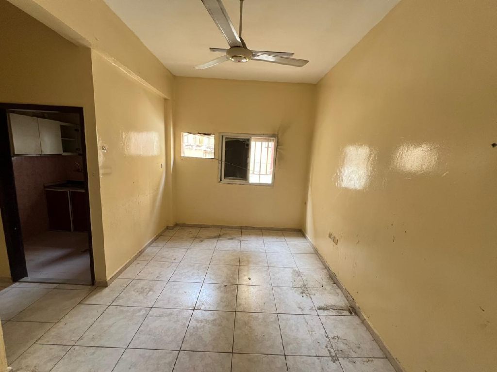 في الروضة عجمان بالقرب من شارع الشيخ عمار غرفة وصالة طابق أرضي بدون تكييف