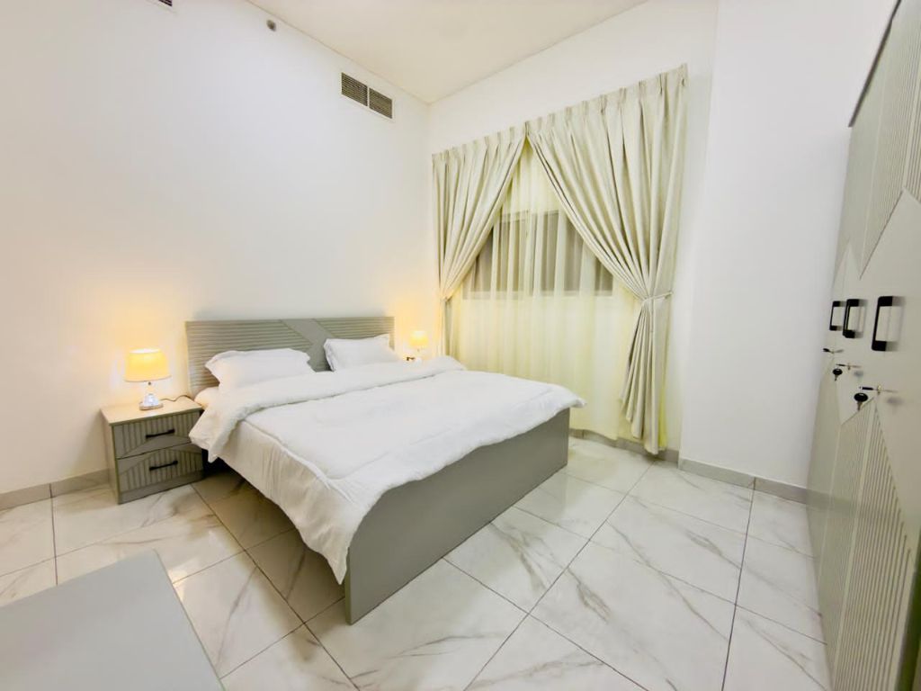 شقة غرفة وصالة عجمان منطقة النعيمية 1 بجانب أسواق العين مقابل رامز هايبر ماركت سهل المخرج لدبي والشارق شقة غرفة وصالة فرش جديد بالكامل حمامين - تكييف مركزي موقف خاص الإيجار 4500 درهم