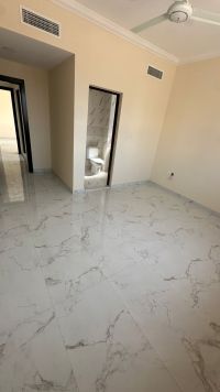 شقة غرفتين أول ساكن في الجرف 3. تشمل 3 حمامات، بالكونة، والغرفتين ماستر. الدفع على 6 دفعات مع تأمين شيك. السعر 43000 درهم