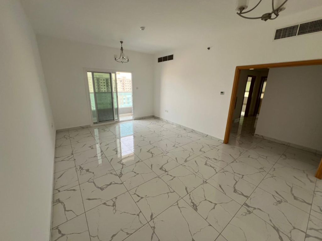 Two rooms and a hall for annual rent, Al Jerf 3, next to the Chinese market, price 38 thousand, in 6 installments, check security, super deluxe finishing, very spacious areas, two master rooms, 3 bathrooms - central air conditioning - balcony with a wonderful view, a very distinguished location, close to all services and close to bus stops and easy to exit to Dubai and Sharjah. We also have other offers