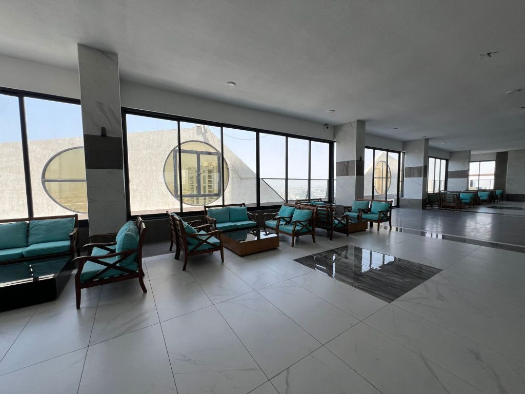 For Annual rent Premium 3BR Hall Apartment in Rashidiya 1 with Gym, Pool & Aqua Park. Features 3 bedrooms with built - in wardrobes, 3 modern bathrooms, spacious hall, and a kitchen equipped with the latest appliances. Balcony with open view. rent AED72000/ year with flexible payment up to 4 installments