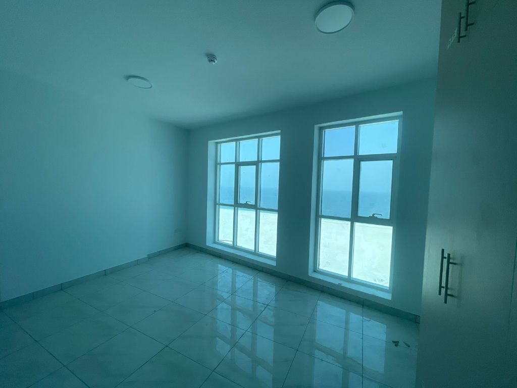 Brand - new apartment for annual rent in Al Nakheel 2, Ajman, located directly on Ajman Corniche with a stunning sea view. It includes 2 bedrooms, a living room, 2 bathrooms, central AC and built - in wardrobes. Annual rent starts from AED45000, with another option at AED48000, payable in 4 cheques. Prime location with a spacious layout