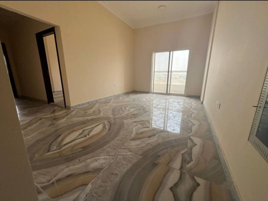 For rent in Ajman, a one - bedroom apartment with two bathrooms, a balcony, and central air conditioning in Al Jerf 3 area