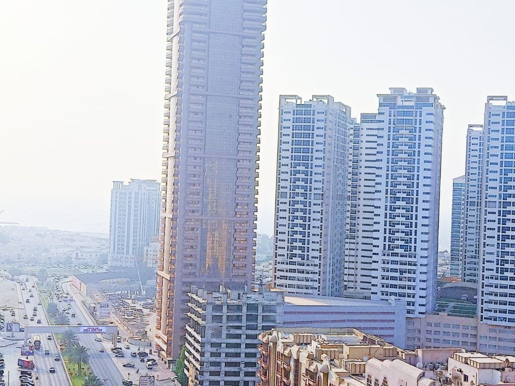 With an open view in a prime tower directly on Sheikh Khalifa Street, a very large apartment. The apartment consists of three bedrooms + a separate living room + a distribution room + a laundry area + maid's room with a bathroom + five bathrooms + two balconies overlooking the main street. All rooms are master bedrooms + all rooms have built - in closets. Spacious and well - spaced areas suitable for