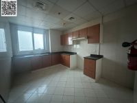 Largest 2BR hall apartment for annual rent at Ajman Corniche - Ajman. Features 2 master bedrooms with built - in wardrobes, 3 stylish bathrooms, spacious hall with open view, and wide fully equipped kitchen. Excellent layout in prime lively location. Includes gym and pool access. Annual rent AED65000 with flexible payment up to 4 cheques. Perfect for family comfort and luxury