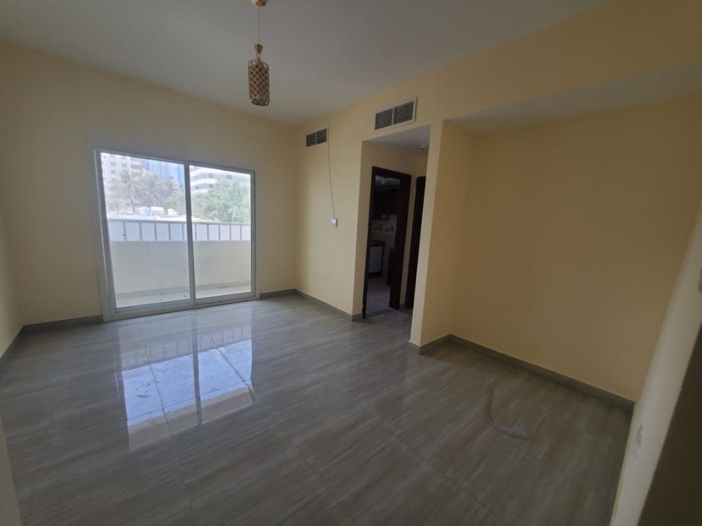 One - bedroom apartment on Ajman Corniche, 30000, two bathrooms, master bedroom, balcony, excellent view, central air conditioning and cooling system, maintenance by the owner, new building, high - end finishes, and a distinguished location on Ajman Corniche