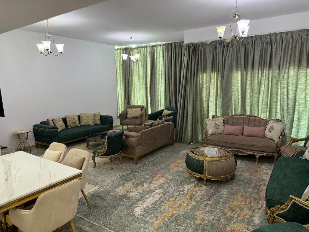 Spacious 3 - bedroom apartment with a panoramic sea view for monthly rent, ideally located between Sharjah and Ajman. The apartment features three sea view bedrooms, a large living room with balcony, 4 bathrooms, maid’s room, office, cinema room, and a fully equipped kitchen with modern appliances. fully furnished with luxury hotel - style furniture, in a prime location close to the Sharjah - Dubai exit