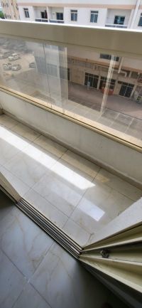 One - bedroom apartment for annual rent in Ajman, Rashidiya 1, behind the Ramada Black Hotel, with central air conditioning, a large balcony, and a bathroom. AED26000 Four check installments AED2000 cash security deposit For communication, WhatsApp or call
