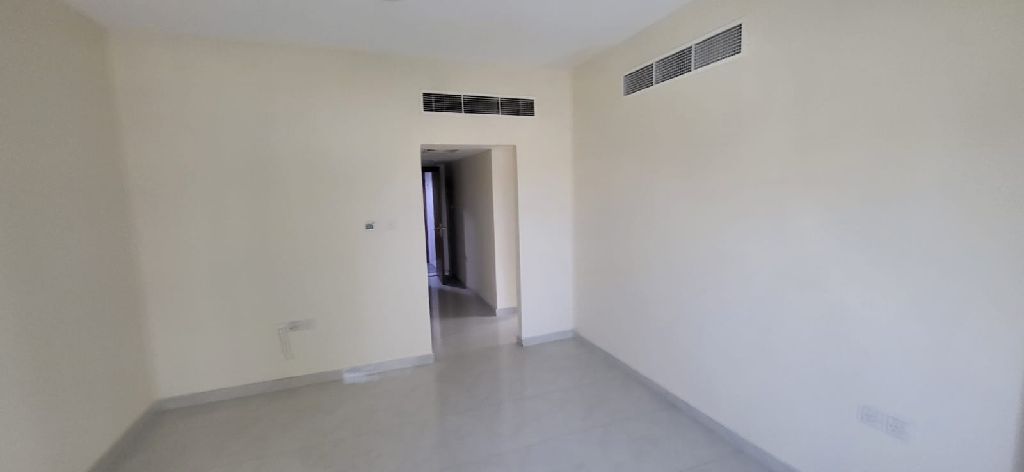 A second - floor, two - bedroom apartment for annual rent on Ajman Corniche, with a large balcony, two bathrooms, natural gas, central air conditioning, and spacious living areas. 38000 4 check installments