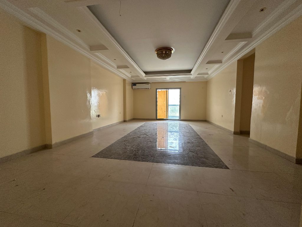 The cheapest 3 - bedroom, 3 - bathroom apartment for rent in Ajman, Rashidiya 3, near Grand Mall and Old Traffic Street. Features 2 balconies, split air conditioning units, and payment plans in 4 or 6 installments with a security deposit. Unbelievable price of AED50000