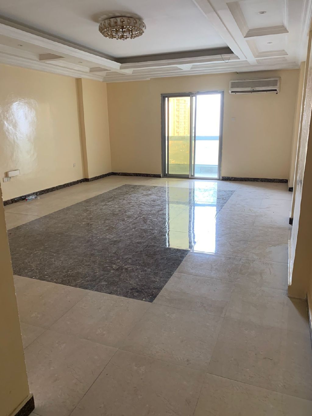 3 bedrooms and a living room in Rashidiya 3, very spacious, split AC, balcony, and 3 bathrooms. 48000 dirhams payable in 4 installments with a security deposit by check