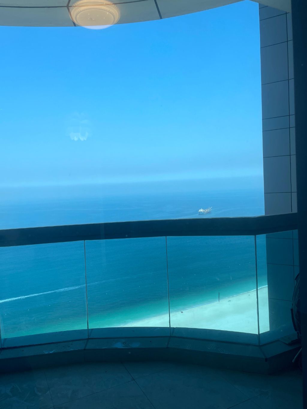Two bedrooms and a living room with a full sea view in Ajman Corniche Towers Maid's room (master suite) 3 bathrooms Balcony with a full sea view Excellent size Private indoor parking Price AED75000, payable in 4 installments with a security deposit check