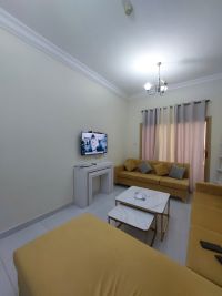 For rent Two - bedroom apartment with living room, two bathrooms, kitchen, balcony, and furniture in Al Amerah, Emirates City, with parking. rent AED38000