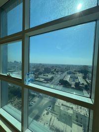 Two bedrooms and a living room for annual rent in Ajman, City Towers, opposite Grand Mall, next to Safeer Mall and Dana Mall, on Khalifa Main Street, Al Al Nuaimia 3. Open view. Two bathrooms with a balcony. Price AED38000 per year