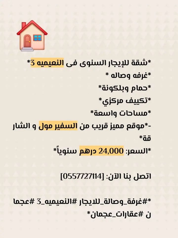 غرفة وصالة للإيجار في النعيمية 3 حمام وبلكونه تكييف مركزي مساحات واسعة موقع مميز قريب من السفير ومدخل دبي والشارقة السعر 24000 درهم سنويا غرفة - وصالة - للإيجار النعيمية - 3 عجمان عقارات - عجمان