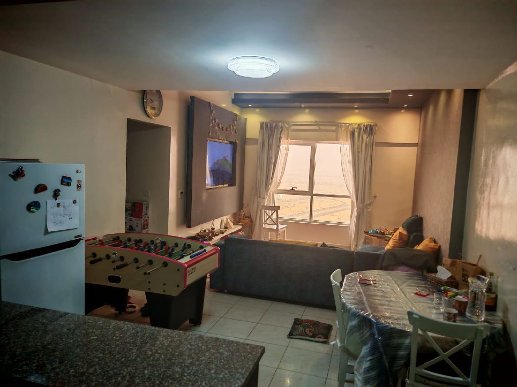 Two - bedroom apartment with a living room, two bathrooms, and an open view. Located in Gold Crest. Includes private parking. Price 39000 SAR. Deposit 3000 SAR (cash)