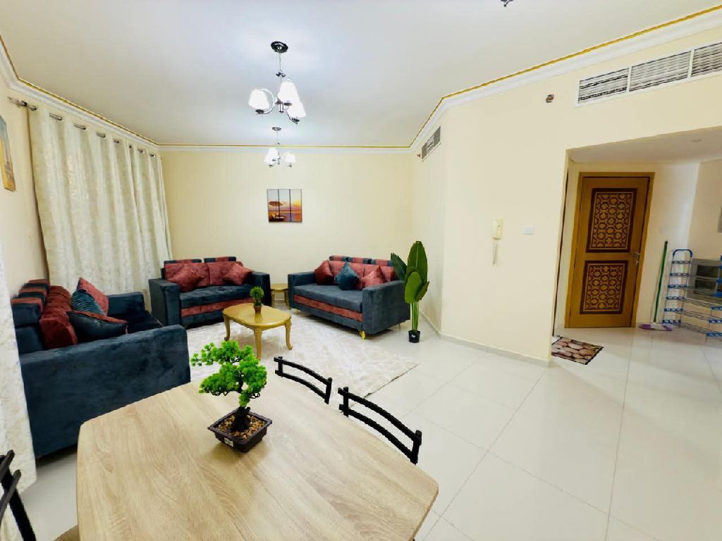غرفة وصالة مفروشة للإيجار الشهري - عجمان الجرف 2 خلف سيتي سنتر مساحة كبيرة - فرش نظيف مكان مميز وقريب من جميع الخدمات شامل جميع الفواتير (كهرباء، ماء، صرف صحي، انترنت) جاهزة للسكن فورا