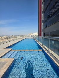 For annual rent in Ajman - Al Jerf 2, next to Dalia Center. Second tenant. Two bedrooms and a living room, 3 bathrooms, and a balcony. Central air conditioning, with parking, gym, and swimming pool. Open view, large apartment area, super deluxe finishing. Prime lively location, close to all services. WhatsApp only