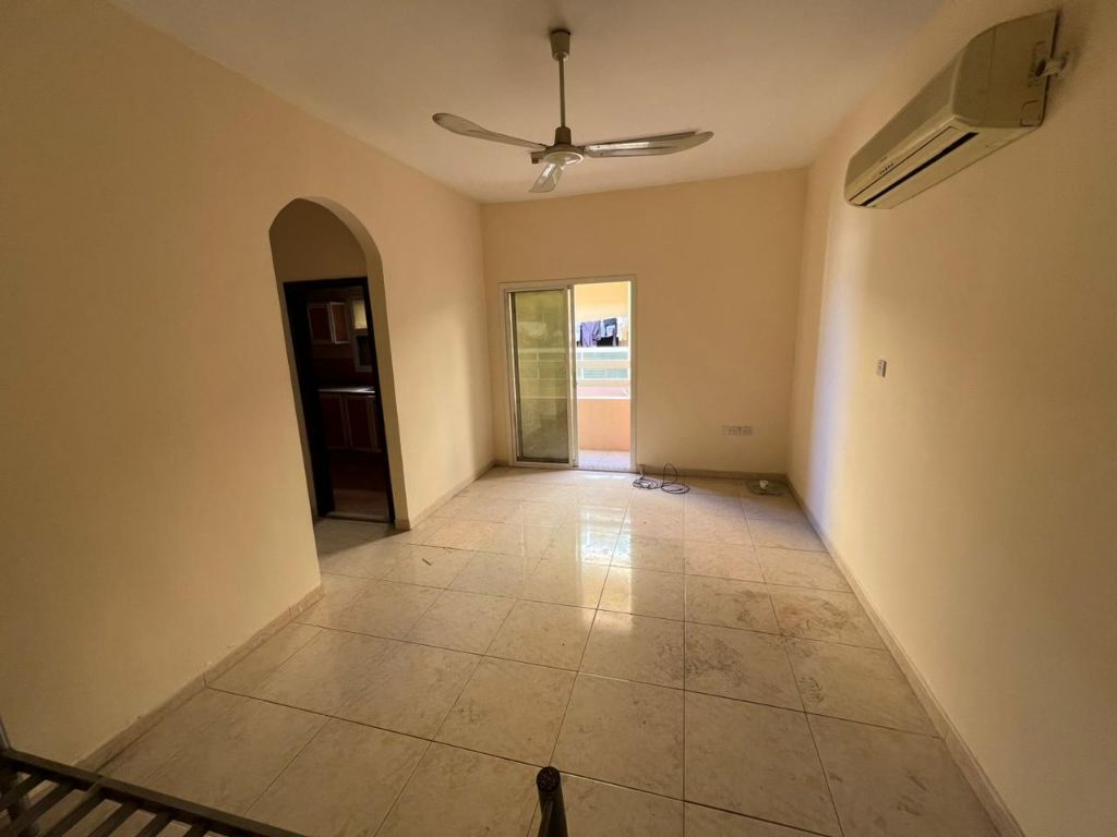 Two rooms and a living room, Al Rawda, Mecca Street, first floor without elevator, 2 bathrooms with balcony, split air conditioning. Price 30000, payable in 4 or 6 installments. Families only