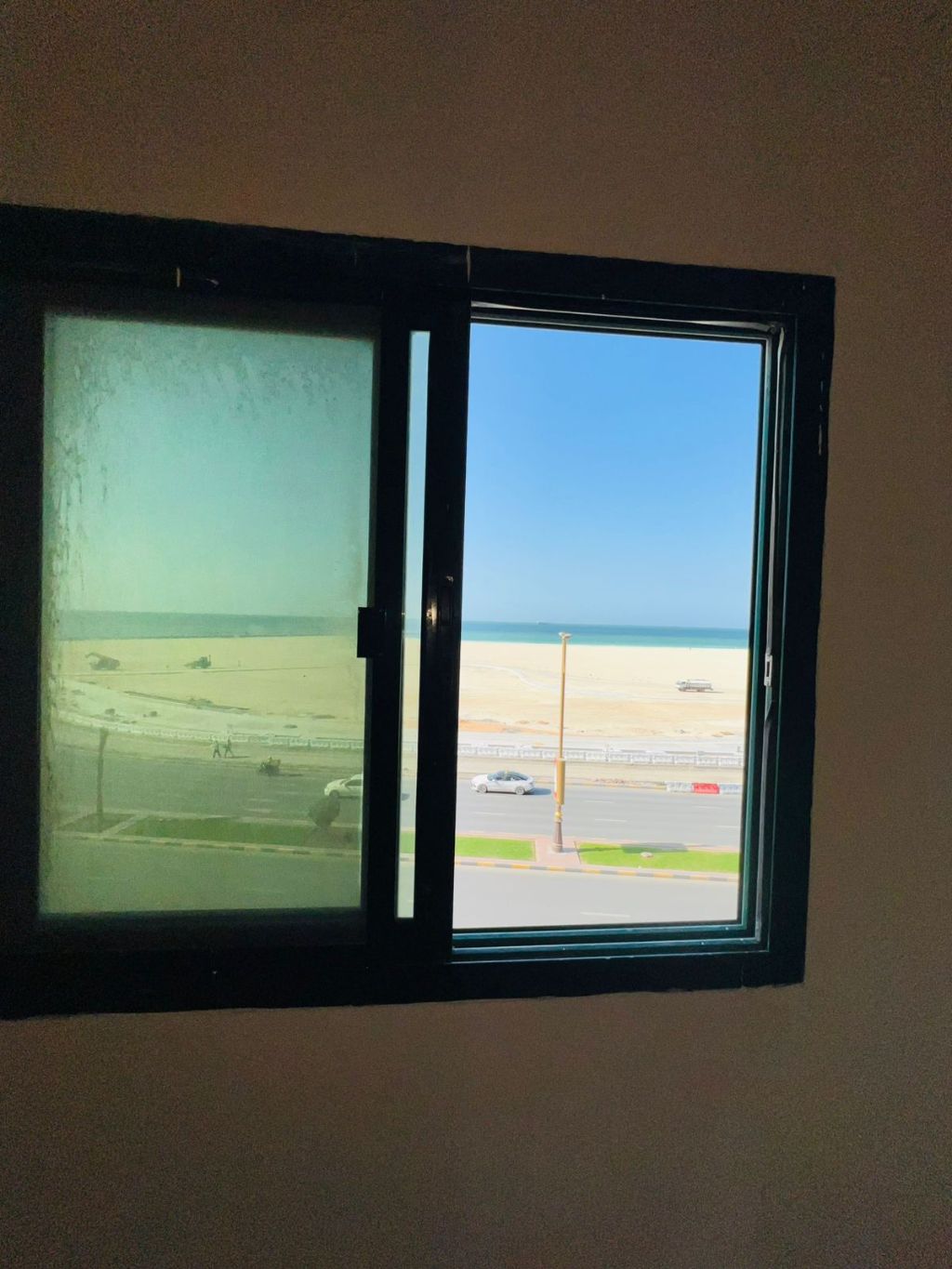 For rent in Ajman Corniche near Ship Roundabout second - occupancy 1BHK apartment with excellent space, open view, two bathrooms, and central AC. Prime location close to the Corniche, shops, and main roads. Price AED30000 per year