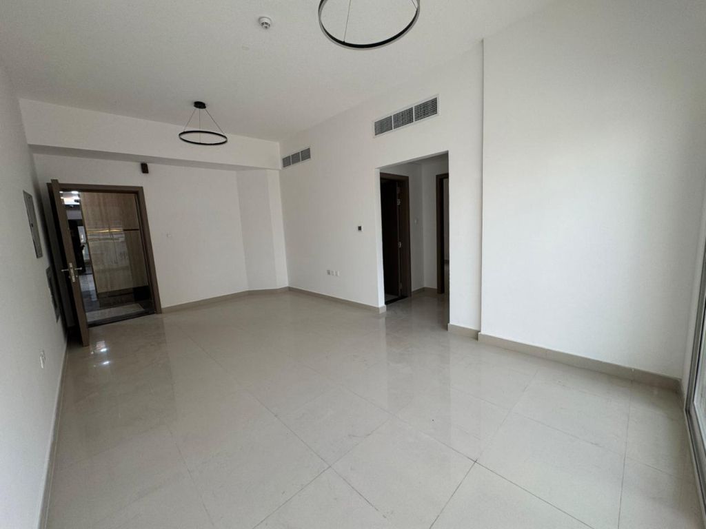 Luxury one - bedroom apartment for annual rent in Al Jerf 3, Ajman. First occupancy, close to Sheikh Mohammed Bin Zayed City Road. Features a master bedroom, spacious living room, two bathrooms, central air conditioning, and a balcony. Annual rent is AED35000, payable in four installments. Security deposit required via undated check. Conveniently located near the Dubai and Sharjah exit