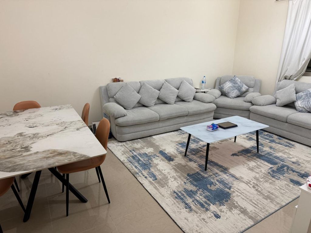 For monthly rent in Ajman, a fully furnished apartment in Al Jerf 3. It consists of two bedrooms, a living room, a kids’ room with three beds, and three bathrooms. The apartment includes a 55 - inch TV, internet, water, and electricity with no drainage bill. The furniture is brand new. The location is five minutes from Mohammed Bin Zayed City Street, close to shops and malls, with free parking under