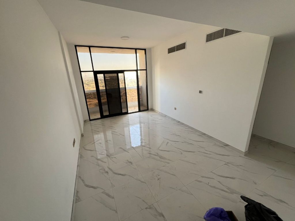 Two bedrooms and a living room with three bathrooms and a balcony with an open view. Two master bedrooms. Central air conditioning. New building, second occupancy. Located on the main street. Annual rent 45000 (currency unspecified) in four installments