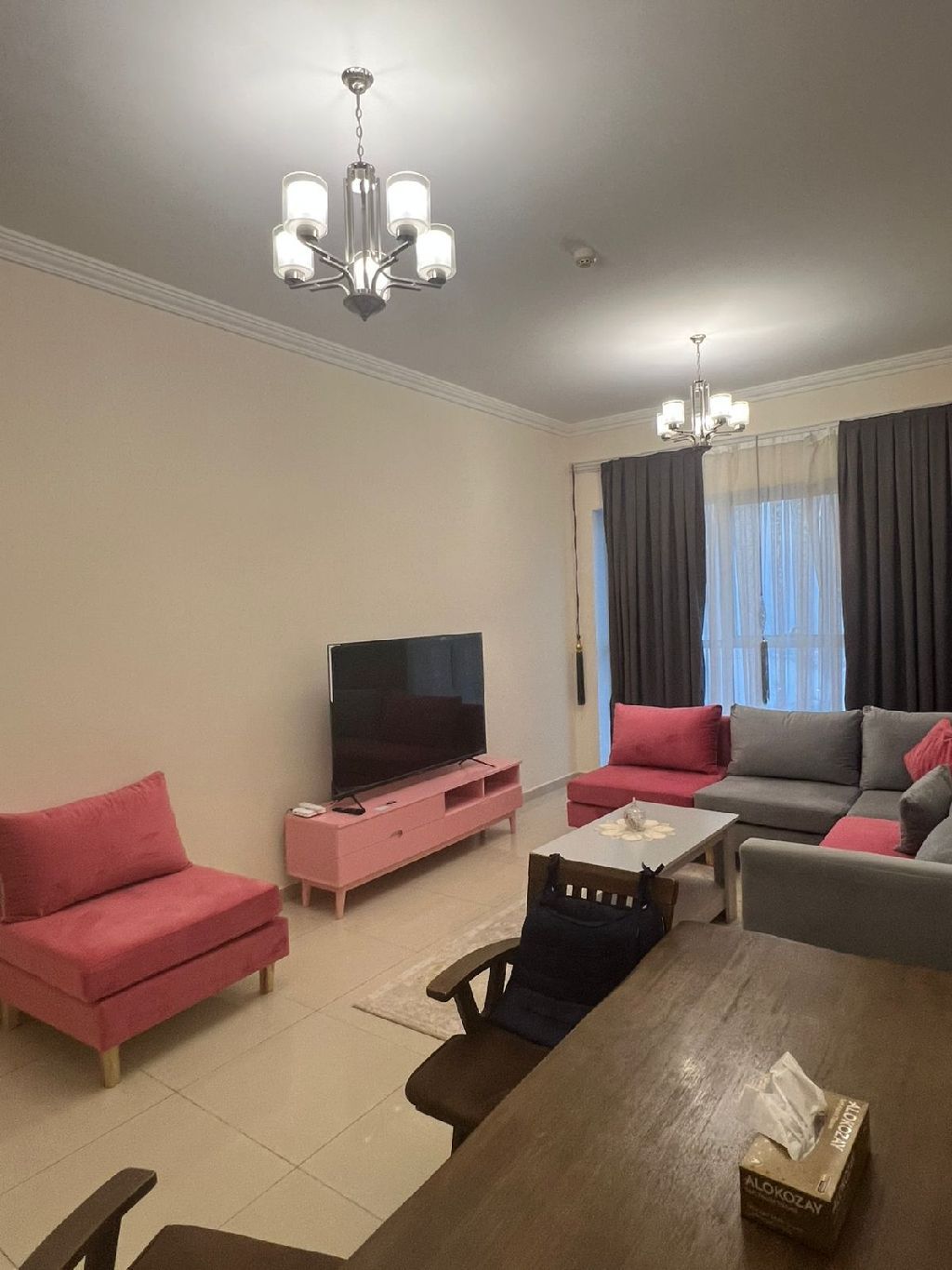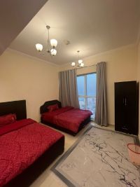 Furnished two - bedroom apartment with a living room on Ajman Walk, all bills included, sea view. Includes private parking. Price reduced to AED5500. Security deposit AED1000. Available now