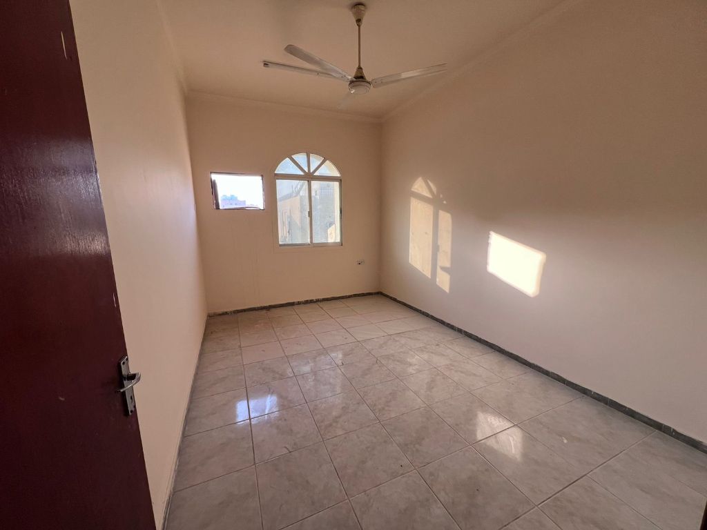 Two - bedroom apartment for annual rent in Al Al Nuaimia 2, Ajman, in a prime location near Wasit Roundabout with easy access. The apartment is unfurnished (no air conditioning or elevator) bright, spacious, and features excellent layouts for comfortable living. It includes two bathrooms and a balcony with a great view, making it suitable for families. The location offers convenient access to Sharjah