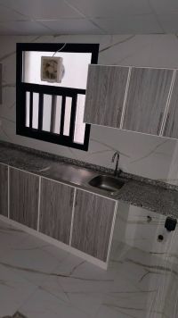 For rent in Al Jerf 3, two bedrooms, a living room, a balcony, three bathrooms, and a fully equipped kitchen. Two master bedrooms with very spacious areas, a very large living room with a balcony overlooking the street, a bathroom in the living room, and a fully equipped kitchen. rent is 43000