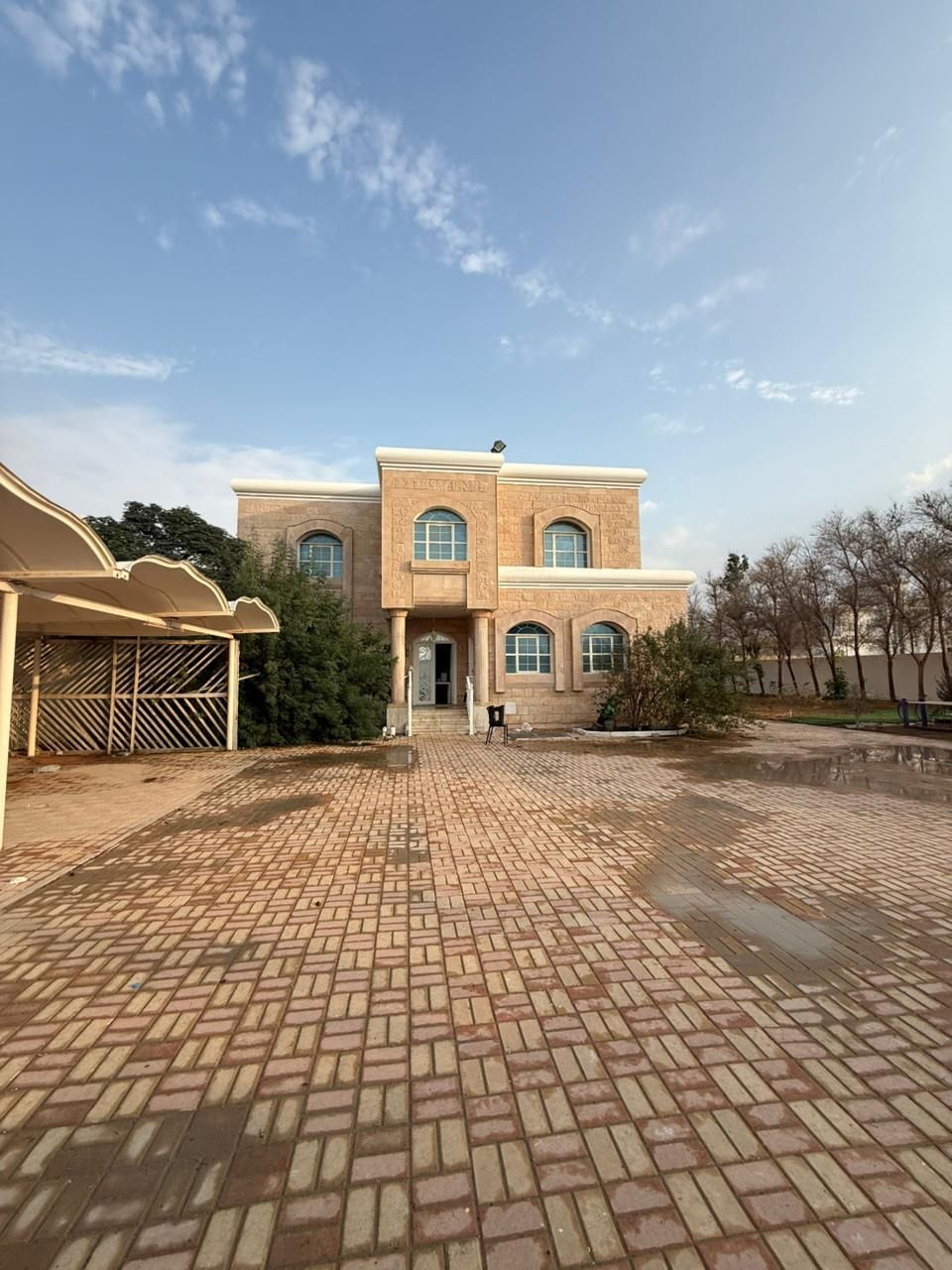 Villa for rent in Al Nouf, Sharjah. The Villa consists of two floors, five master bedrooms, a living room with a large Majlis, an outdoor kitchen, a maid's room, and a storage room. Land area 17000 SqFt. Internal contract and local electricity included. All maintenance is the owner's responsibility. rent AED130000 (one or two checks) Suitable for families and located in a quiet and desirable