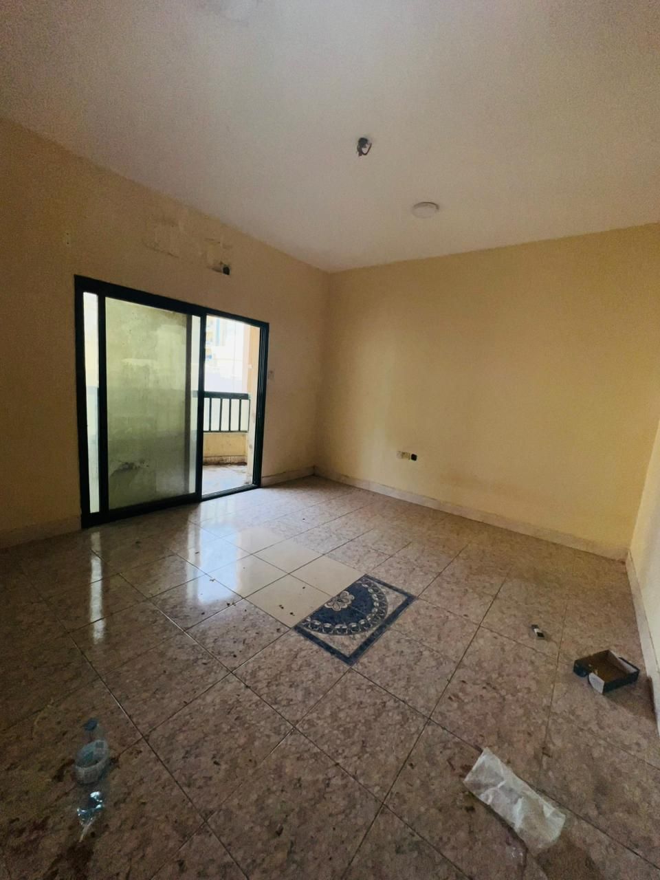 2 bedrooms with living room, balcony, and 2 bathrooms for rent in Ajman Rashidiya 1. Spacious apartment on the main road, no AC. Price AED32000/ year