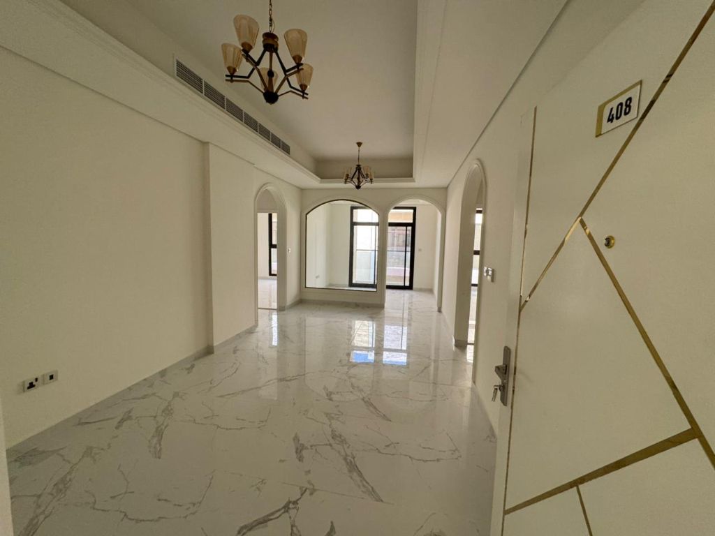 The most luxurious and prestigious apartment for annual rent in Ajman - Al Al Mwaihat area. This brand new, two - bedroom apartment is available for its first occupancy and boasts a prime location directly on Mohammed Bin Zayed City Road, next to a school complex. The apartment features a living room, a Majlis (formal sitting room) two bathrooms, a balcony, and access to a swimming pool within the building