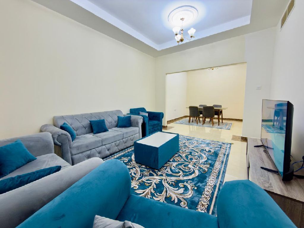 One - bedroom apartment Al Rawda 2 area, Sheikh Ammar Street VIP furnished, two bathrooms, and a balcony monthly rent, new building, super deluxe finishing, first occupancy, central air conditioning, all appliances are new Next to the mosque and all services are available