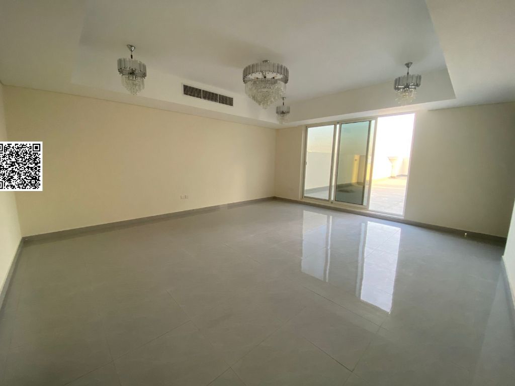 Penthouse, first occupancy, Majlis + living room with private bathroom and large roof terrace. 3 master bedrooms, balcony with open view. Fully equipped kitchen with balcony + maid's room with ensuite bathroom + laundry room. Price 80000 SAR4 installments Security deposit by check. Al Rawda 1, near Mohammed Bin Zayed City Road and Sheikh Ammar Road. Strategic and vibrant location, close to all services