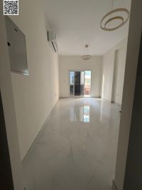 Two bedrooms and a living room for annual rent in Ajman, Al Al Nuaimia 1. New building, first occupancy. One month free. 3 bathrooms. Price AED45000. Models available starting at AED43000. 4 or 6 installments. Security deposit required