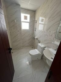 A two - bedroom apartment with two bathrooms and a balcony, the first resident from the Aaliya area on the Dubai exit directly near Sheikh Mohammed Bin Zayed City Road with spacious spaces and super deluxe finishing