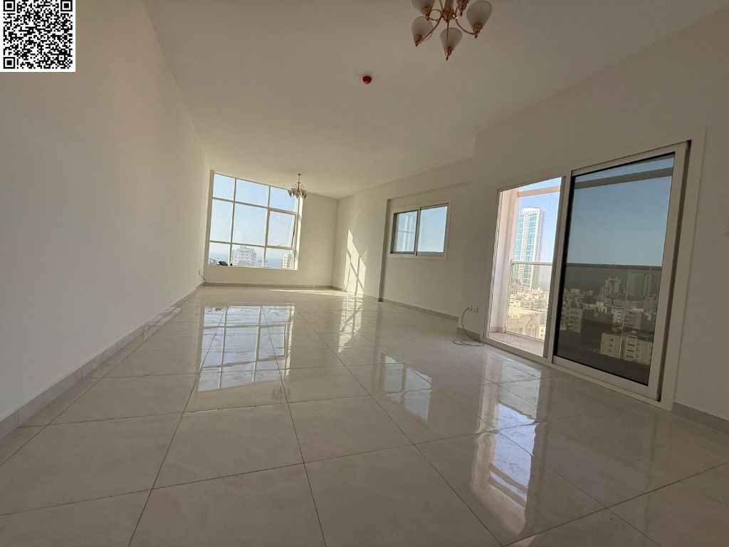Luxury three - bedroom apartment with a living room available for annual rent - Three bedrooms - Four bathrooms - Kitchen - Maid's room - Two balconies with open and sea views - Free parking - Rumaila area, near Ajman Corniche, Sheikh Khalifa Bin Zayed Road, and Sharjah Corniche Road. Price AED72000. Contact
