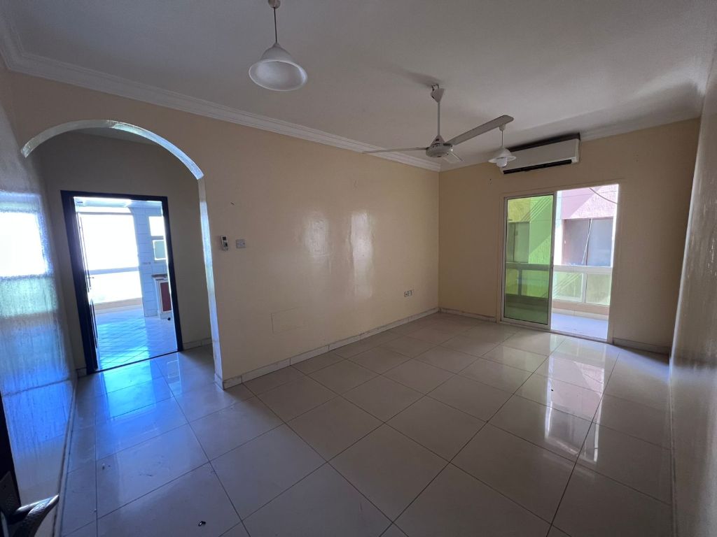 For annual rent in Ajman Corniche A spacious one - bedroom apartment at the lowest price AED25000 payable in 4 installments A distinctive apartment with 2 balconies in a family building located in a convenient location on a main street and close to the exit. The location is Al Nakheel, second row directly on Ajman Corniche with a partial sea view. Features include split air conditioning, full