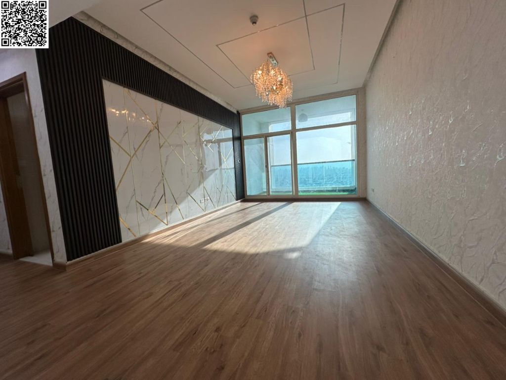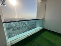 Luxurious and beautiful three - bedroom apartment with a living room for annual rent in Rashidiya 2, Ajman One Towers. Features include three master bedrooms, five bathrooms, a balcony with open sea views, a maid's room with master bathroom, a laundry room, super deluxe and luxurious finishes, and free parking. This prime location is above Al Amour Restaurant and Bab Al Hara, close to Ajman Corniche