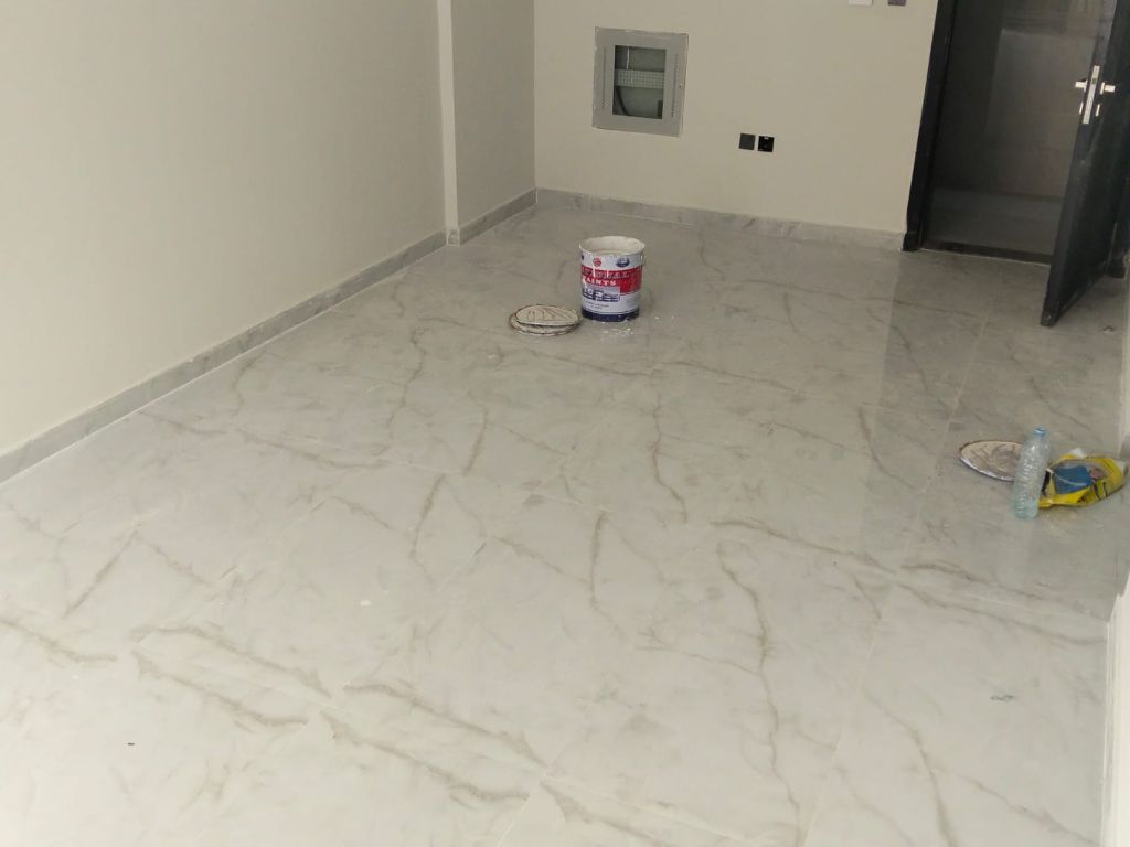 For annual rent in Ajman - Al Jerf 3 Brand new apartment with 2 master bedrooms, living room, and 3 bathrooms, central AC, parking inside the building. Annual rent AED45000 in 4 payments, security deposit AED3000 cheque. Prime location close to all services