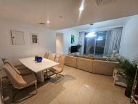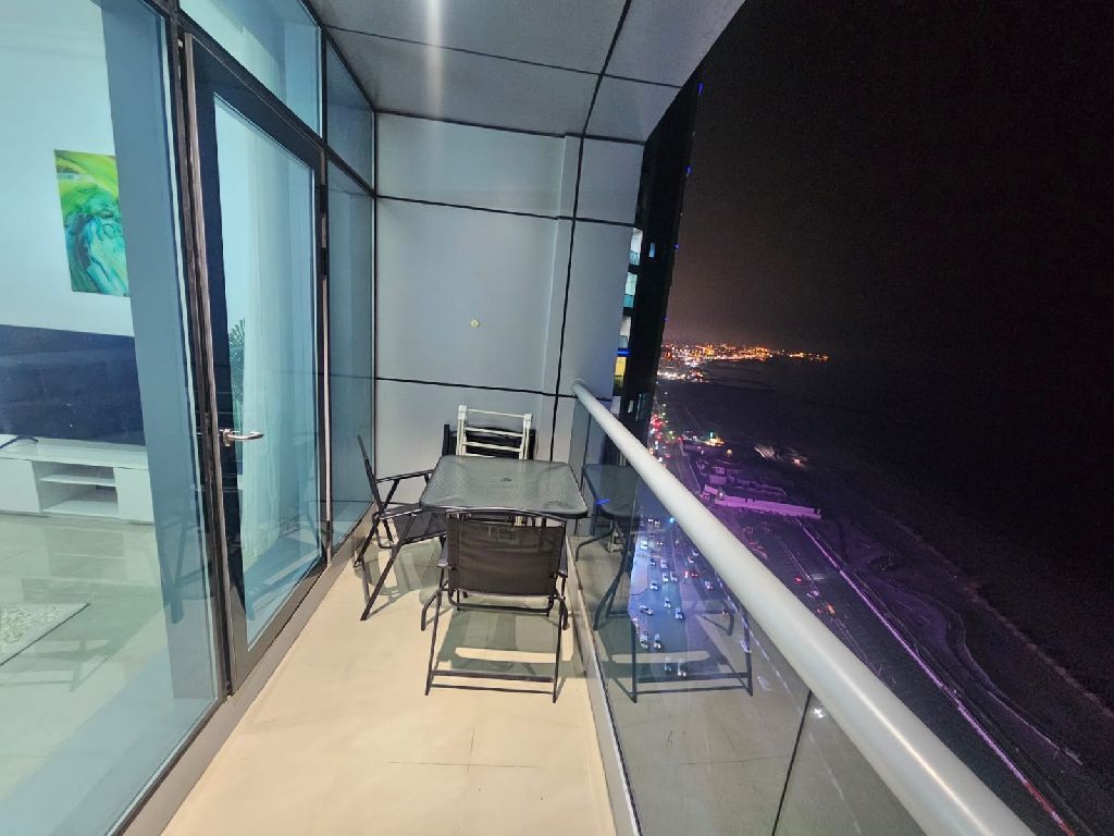 Furnished apartment for rent in Ajman, directly overlooking the Corniche. Super Lux furnishings. Two bedrooms, living room, two bathrooms, and a small laundry room. Located in the Corniche Residence Towers. All utilities included. Only AED11000 per month required