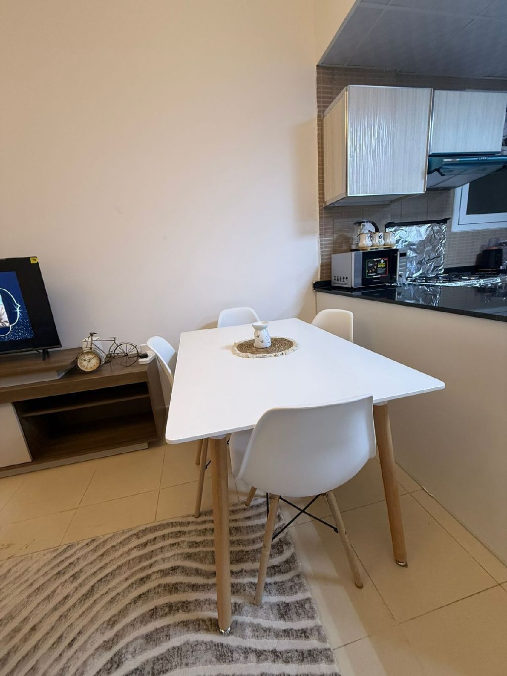 One bedroom and living room for monthly rent Ajman City Tower monthly rent inclusive of electricity, water, internet, and parking All furniture is new Fully equipped kitchen rent AED5200 per month Security deposit AED1000 cash Available on the 9th