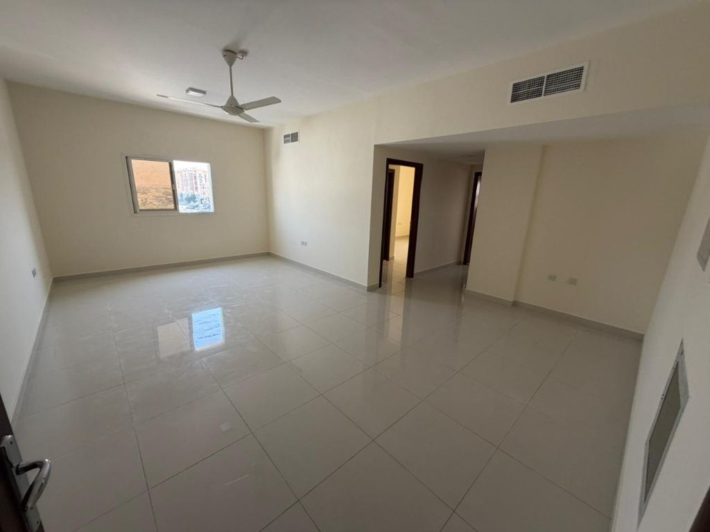 Available for annual rent in Al Al Mwaihat 3, near Sheikh Mohammed Bin Zayed City Street. Includes a master bedroom, living room, two bathrooms, and a kitchen. No balcony. Very spacious. Central air conditioning