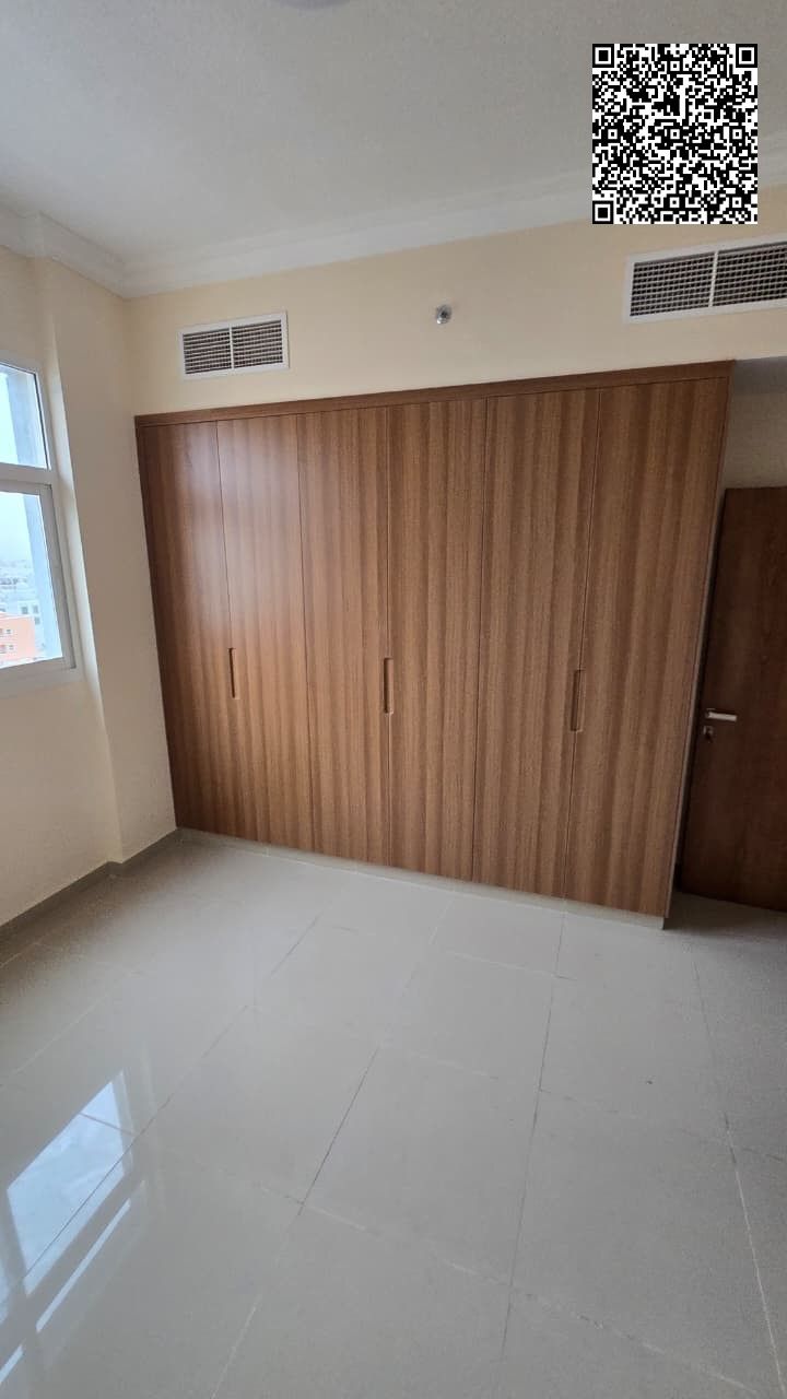 One - bedroom apartment with a living room, first occupant, wall closets, prime location close to Mohammed Bin Zayed City Road, the Chinese market, and Qabail Center. Price 33000 in 4 installments, security by cheque