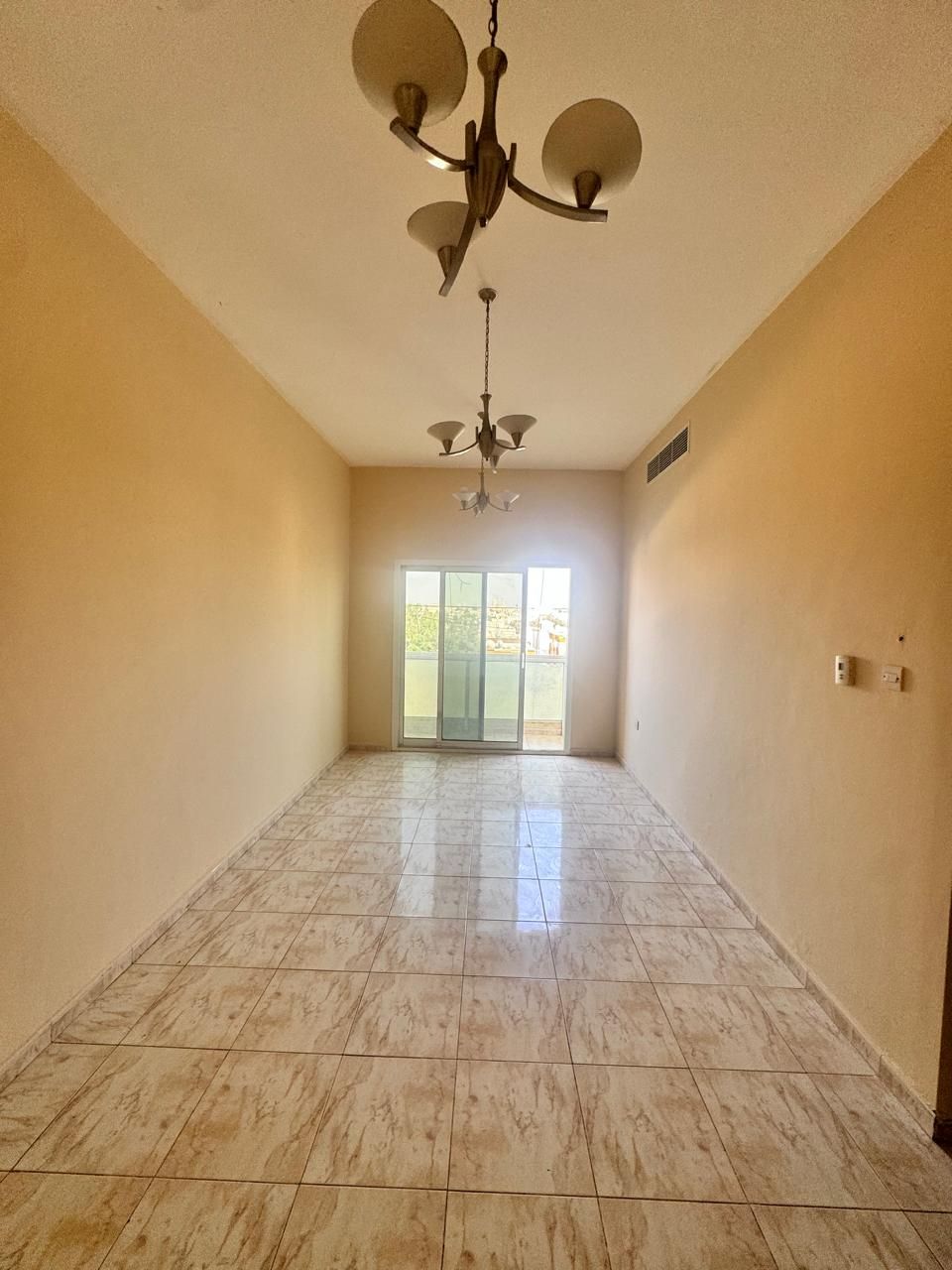 Annual apartment for rent in Al Rawdha 3, Ajman. Consists of two bedrooms and a living room with a distributor, two external bathrooms, a separate living area, central air conditioning, and a balcony. Spacious layout suitable for families, in a prime location close to the Dubai exit. Annual rent is AED35000, payable in 4 installments